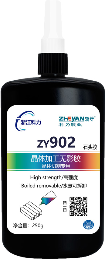 高强度、水煮可拆卸。用于晶片/硅片切割工艺,片状粘结后切割分离,水晶棒状粘结后切割成粒。此胶是本公司专门针对紫外线固化胶粘剂的缺陷所设计的,紫外线固化存在需要投资紫外光设备,材质需要一面透明,这就增加了设备投资成本,对材质通用性不强的缺陷。该胶属于底涂型第三代丙烯酸酯胶粘剂,也被称为晶体胶,粘接材料适应广,使用方便,气味低,无毒,粘接后不留痕迹(无影胶),固化速度快,粘接强度高,耐水煮性好,耐候性好等特点。