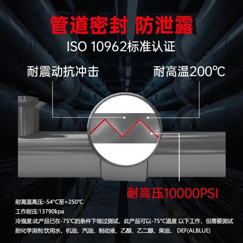 可替代生料带适用于多种金属表面的密封,避免螺纹管道的渗漏。典型应用领域:消防管道密封。
